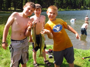 On the Thursday, participants received a presentation from local bee keeper and honey producer Bob Meredith who brought a plexiglass observation case with a hive palette for the kids to examine. Bob kindly treated each child with a jar of his very own Golden Cariboo Honey. In the afternoon, participants learned how to fish in Fountain Lake with the staff of Winner’s Edge Sporting Goods Store. Winner’s Edge kindly provided rods and tackle for those without it, and helped each child practice casting. The fish were jumping everywhere the eye could look, and two lucky participants each caught a rainbow trout! Other wildlife observed included: several Loons; a Great Blue Heron; thousands of Western Toad tadpoles; and several garter snakes.