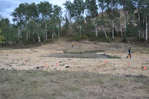 The Strawberry Hill restoration site will in time show it’s success.  As biologist Ernest Leupin explained the area has potential to attract the Sharp-tailed Grouse as well as cavity nesting birds in the mature aspen grove that is near.  The pond had been a watering hole for cattle and wild horses and is in a terrible state.  So the fencing and cattle access ramp are key to the restoration of this wetland.  Many plants, trees and shrubs were thoughfully layed out and planted by the hard working and dedicated participants and of course the hardest working volunteer 83 year old Frank Maydaniuk.