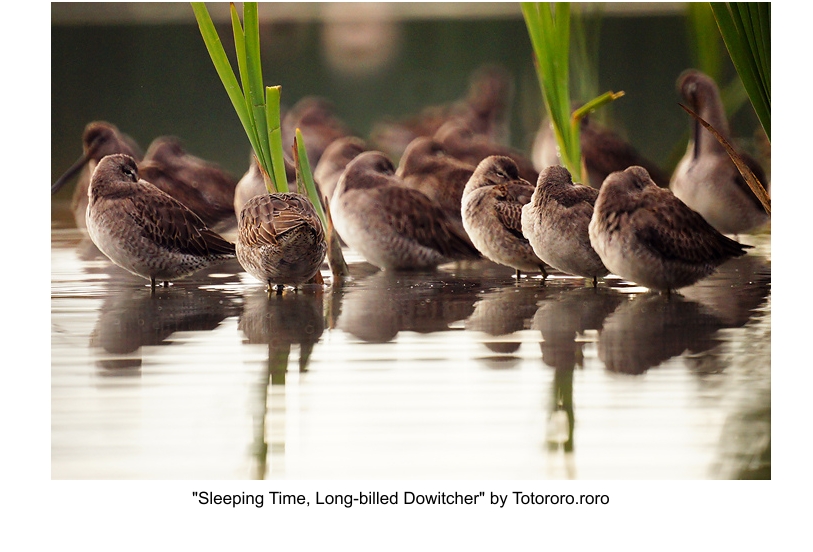 The varied plumage of the Long-billed Dowitcher has been captured beautifully in this photograph, as has the calm of the bird sanctuary where they slumber. We thank TOTORORO.RORO for their submission of the intimate view of this quirky wetland bird.