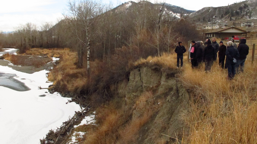 Finally, what workshop would be complete without a field trip? Well, how about 4 field trips? Workshop participants visited the Cache Creek Landfill, the final destination for much of the Lower Mainland’s trash. The active site for garbage disposal is surprisingly small relative to the huge amount of waste carted up to this site, because the garbage is constantly covered with a layer of crushed rock to minimize the impact to the open environment. Still, the modified landscape (i.e., a growing mountainside) is a compelling reason to reconsider the amount of stuff you toss into the trash. We then went to Ashcroft’s waste water treatment site. Although the smell of the facility was unpleasant, like someone beside you constantly “passing gas”, the benefits of water treatment are well worth it. This small facility treats waste water with multiple stages, including: a mixing/oxygenation stage to encourage bacterial growth for the breakdown of materials, settling ponds for solids, and UV treatment. It certainly puts pressure on other municipalities to do the same, like the Capital Regional District of Victoria which, despite improvements sometime on the horizon, continues to discharge largely untreated sewage directly into our ocean. Victoria’s waste water currently only passes through 0.6 cm filters. The other two field trips included a visit to Ashcroft’s public pool (retrofitted with the latest in solar panel technology), and a visit to one of the many stream-side restoration projects of the Bonaparte Watershed Stewardship Society. The latter field trip showcased how a properly designed erosion control structure can provide fish-friendly habitat and improve in-stream water quality. Shoreline segments along the Bonaparte were stabilized with boulders, logs and willow cuttings to create a naturalized watercourse with diversified habitat for wildlife.