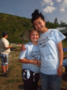 The last day of camp started off with a bang -literally- where, up in the Gorman Wetlands, Ben Thiessen of the North Thompson Fish and Game Club (NTFG), Jay Butcher, and Peggy Brown kindly and patiently taught the group about gun safety. Every participant had the opportunity to open and close the safety features of the small bore rifle several times before pointing it at a paper target. It turned out to be a relaxing day with several games of Capture the Flag and Ninja. By mid-day, the group gathered under the tent where Jay displayed and explained the different traps that are responsibly used by trappers. As evening approached, Bob Sorenson from NTFG kindly drove his truck up with a small trailer full of burgers, hot dogs, drinks, and chips. All parents and volunteers were invited to join the coordinators and kids for a relaxing evening. Active campfire songs were led by Sand Bag and Dragonfly Breath brought out blankets for the group to learn about the importance of camouflage in the wild. The week-long camp ended off with hugs, pictures, and see-you-laters!