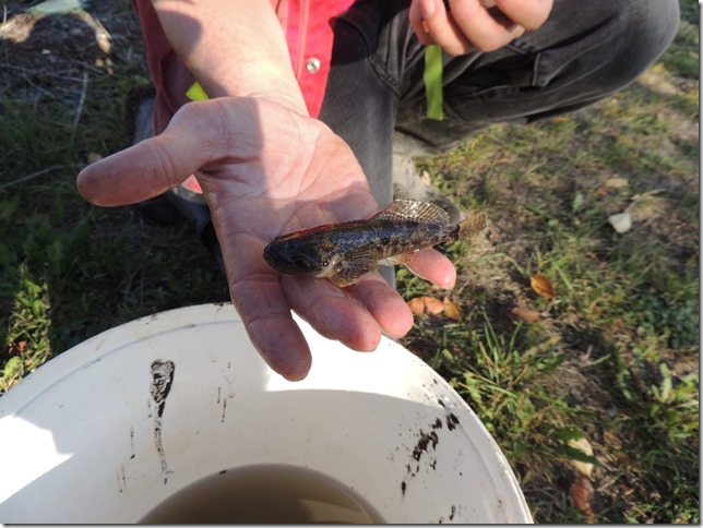 After paying a visit, we are excited to report that phase 1 (the daylighting the first 50m) is in full force! It was amazing to be there and watch the excavator remove the culverts and demolish an old bridge within our short visit. After seeing the sludge from inside the pipes, it’s hard to believe some species like the Painted Turtle can survive. One teacher even recalls talk of a “mud ladened” muskrat living under the bridge. Before our visit, students helped salvage 240 redside shiner, 43 suckers, 2 prickly sculpin, and 3 northern pikeminnow from the culverts before they were removed.