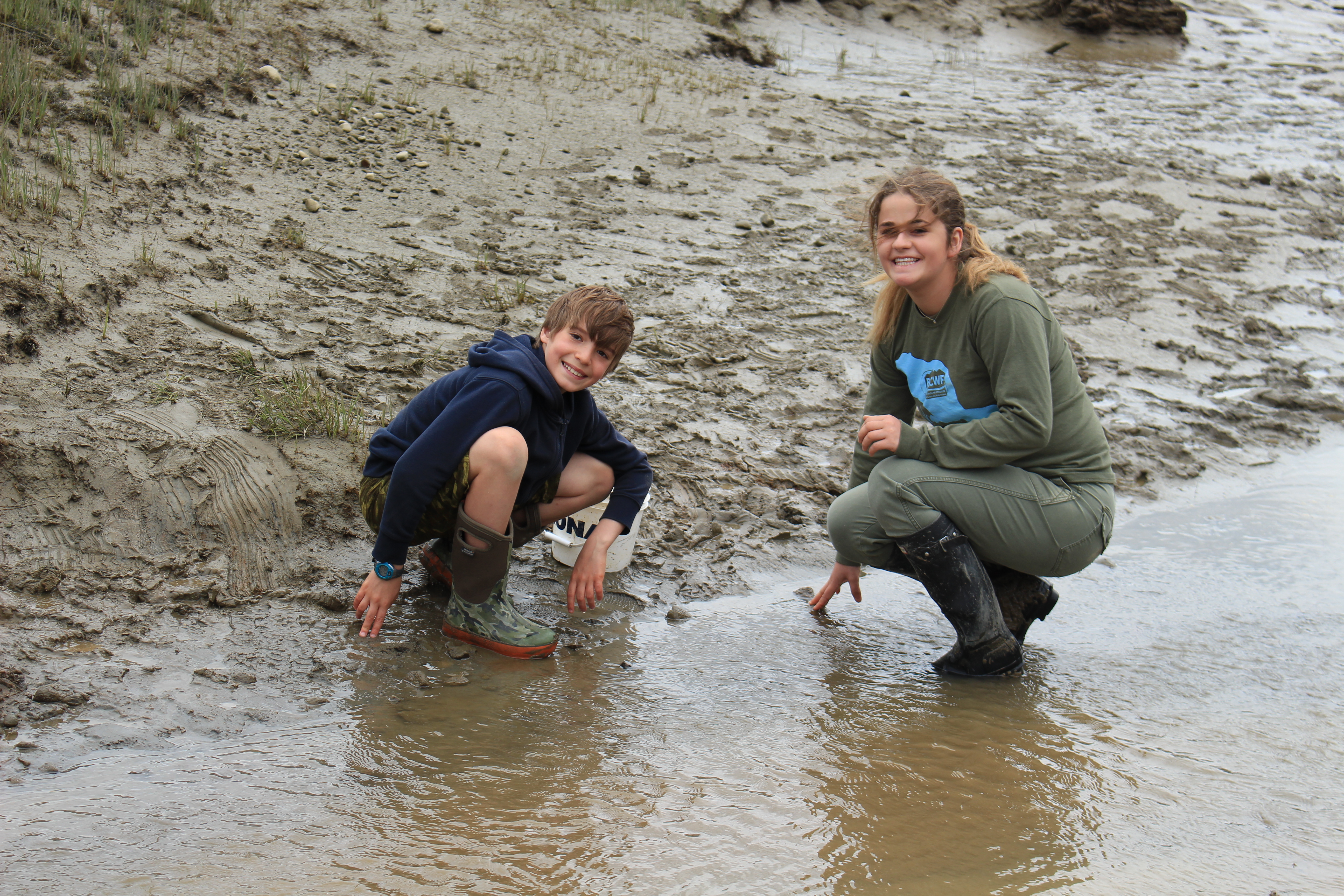 Kids were taught to carefully dip net within the brackish water of the mud flats for invertebrates such as isopods, amphipods, lug worms, and small clams. They had to use their eyes very well to spot the aquatic swimmers, but all groups were successful in their collections. Some groups gave the BCWF Wetlands crew a run for their money, and caught several species of fish such as sticklebacks and migrating Chinook salmon! All species of salmon are dependent upon estuaries, in addition to a long list of other invertebrates, reptiles, and avian species. An estuary is found where brackish water is present: a constant mixing of salty ocean water and freshwater through changing tides and stream runoff. The salinity of the estuary acts as a buffer zone for salmon, allowing them to acclimatize to saltier water before entering the ocean.