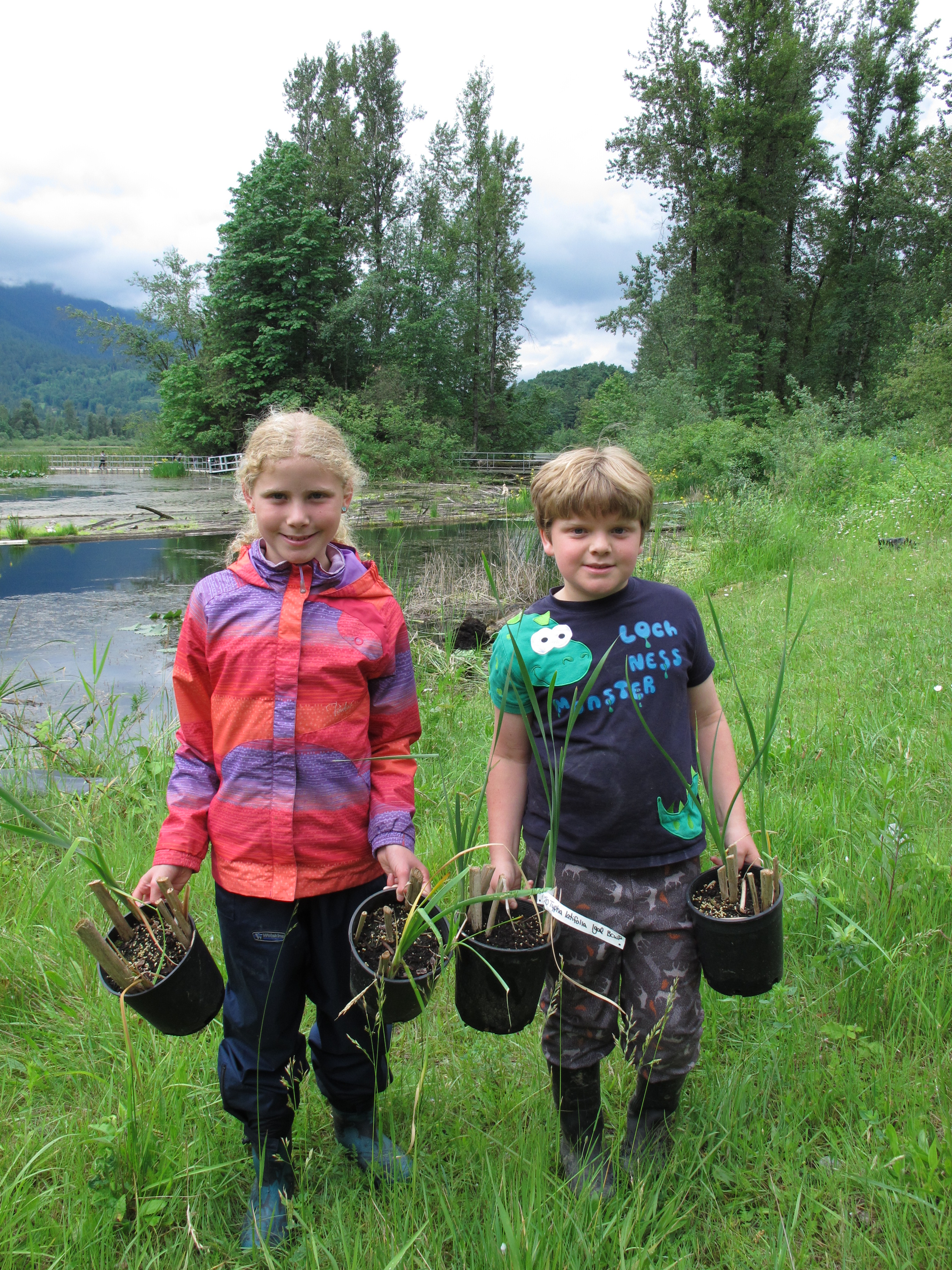 The Wetlands Team had a busy weekend! On Saturday June 10th we were at Cheam Lake Wetlands Park bright and early to begin preparations for a long day of Yellow Flag Iris removal and native species planting. With the help of some hardworking volunteers, and a group of nature-loving kids, we were able to take down approximately 8000 ft² of the invasive species that is overtaking the park!