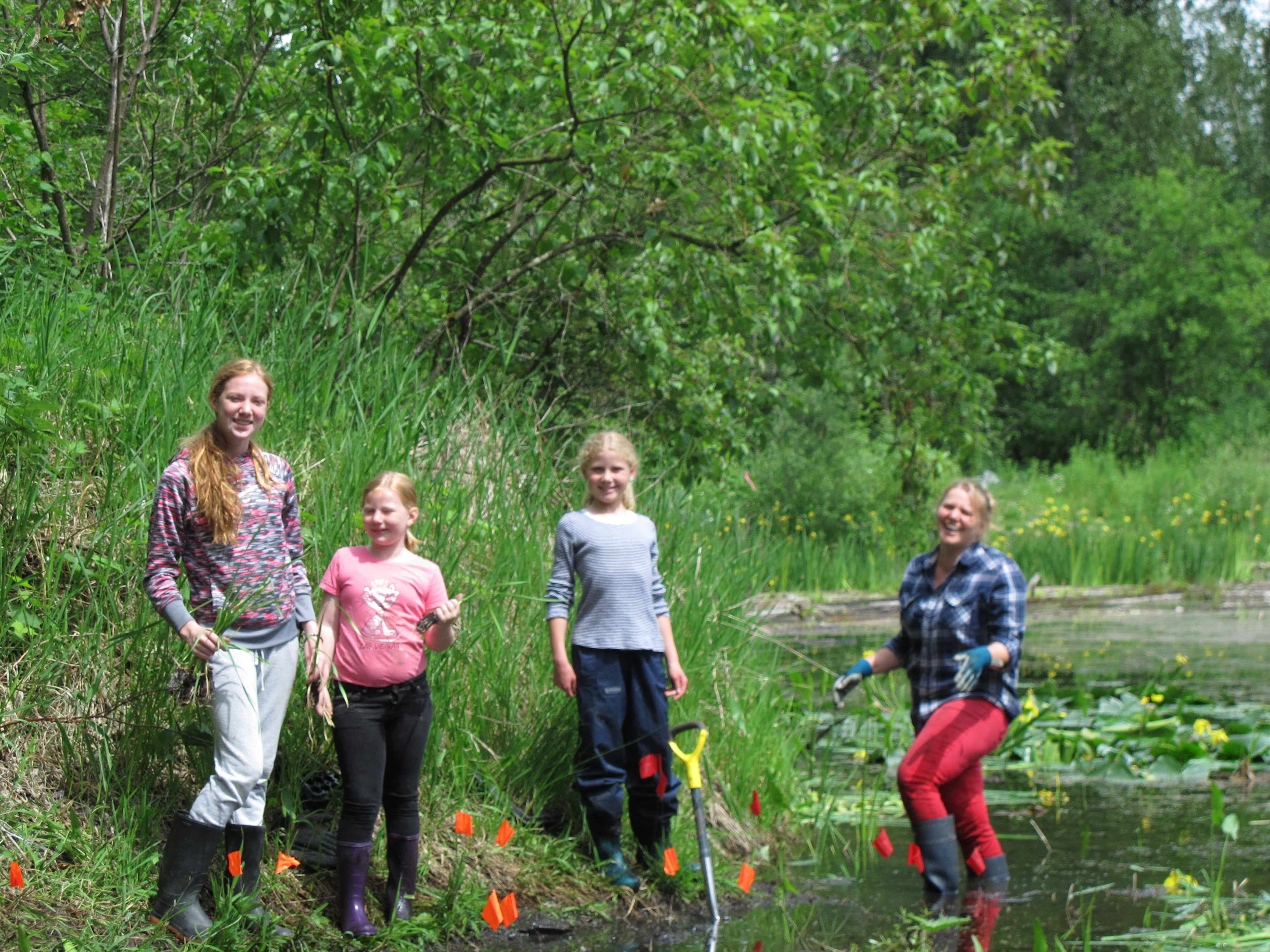 This is an extensive project, and we greatly appreciate all the volunteers who were determined to finish the sites. To our surprise this day attracted more children than adults! While adults placed liner and did some of the heavy lifting, inquisitive and enthusiastic kids helped plant 750 cattail and bulrush plugs to prevent previously-treated areas from being reconquered by Yellow Flag. The new growth represents a brighter future for the park , as the kids represent a new hope for tackling invasive species in the future. Education is critical when controlling invasive species; we hope our volunteers (whether young or not) take the knowledge and first-hand experience of the introduction, proliferation, and damage an invasive species can cause and carry that with them into their communities.