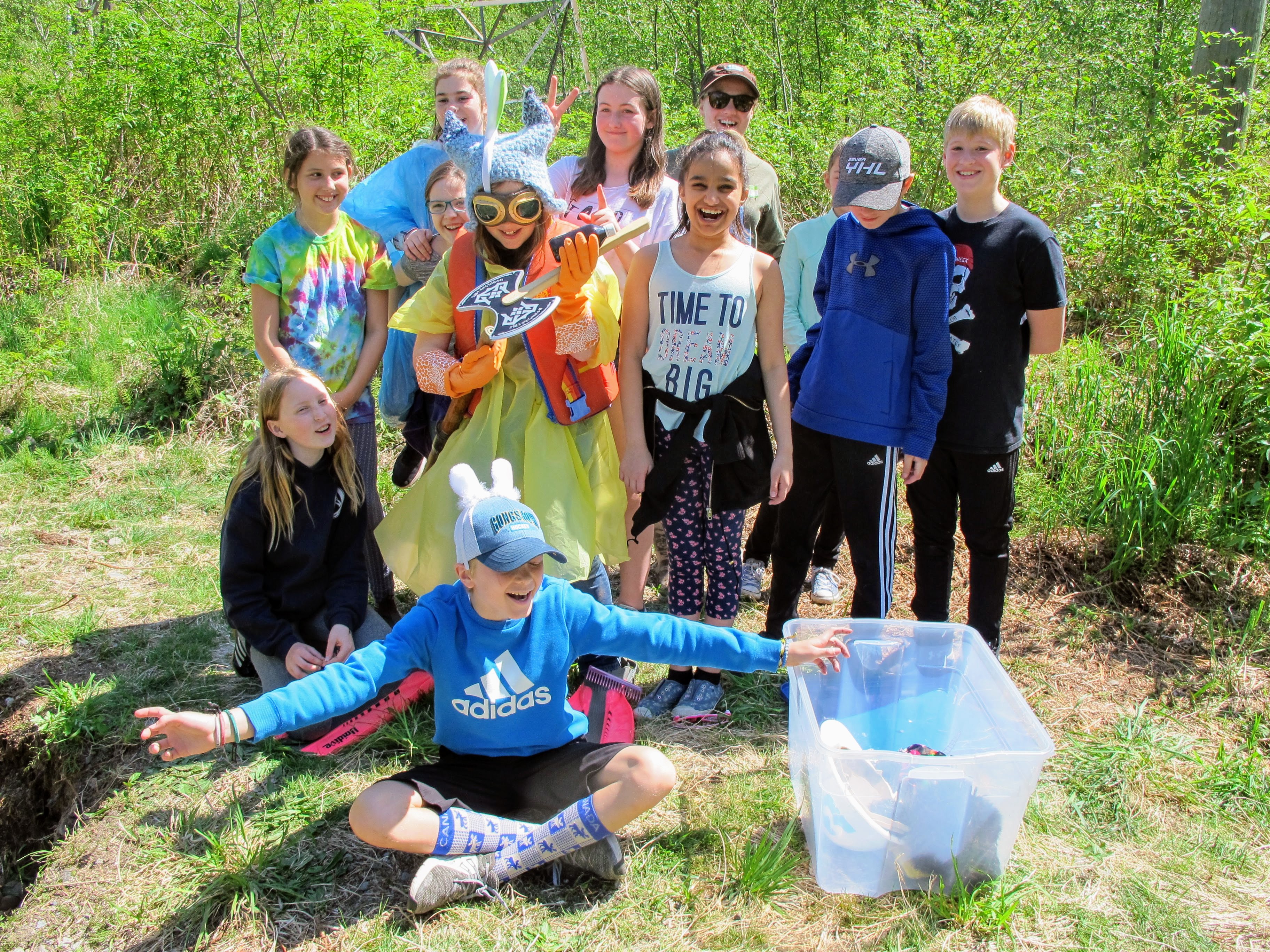 Maureen Nadeau and Emily Suchy of the Wetlands Education Program (WEP) spent an amazing past two weeks in Squamish, joining forces with the Squamish River Watershed Society (SRWS) to deliver educational programs to students from grades 2-6! This year’s theme was, “A River Runs Through Us” and the event was held at the ever relevant Mamquam Reunion. Rhonda O’Grady, the Education Outreach Coordinator for SRWS, developed four incredible stations that focused on relating children with nature and teaching them about the connections between rivers, forests, salmon, beavers, and of course, humans. Each station brought another important topic to life through hands-on, place-based learning. Students were able to trek through mud, walk through a forest blindfolded, and get their hands dirty planting native trees and shrubs.