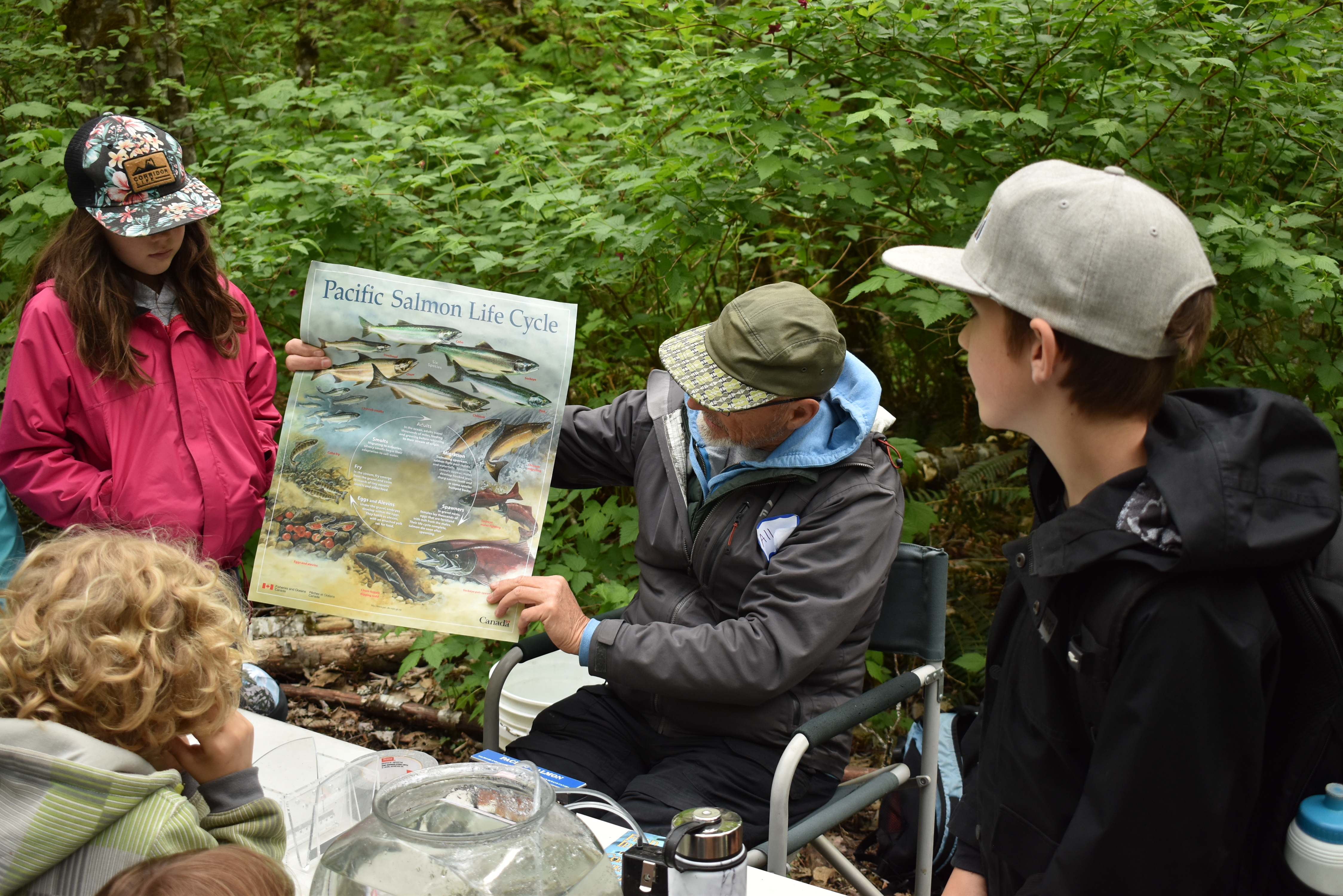 Each year, the Squamish River Watershed Society (SRWS) hosts an outreach event for elementary school students to provide a space for experiential learning through interactive activities and games. Typically, the focus is on the estuary, the rivers within the watershed, and the species that make this region home. This year, the focus was on salmon and how they play a vital role in ensuring the health and vitality of this incredibly diverse ecosystem. The program was held over two weeks, giving students the opportunity to participate in activities that imparted a basic understanding of the salmon life cycle, and all the ways in which salmon are an essential keystone species.