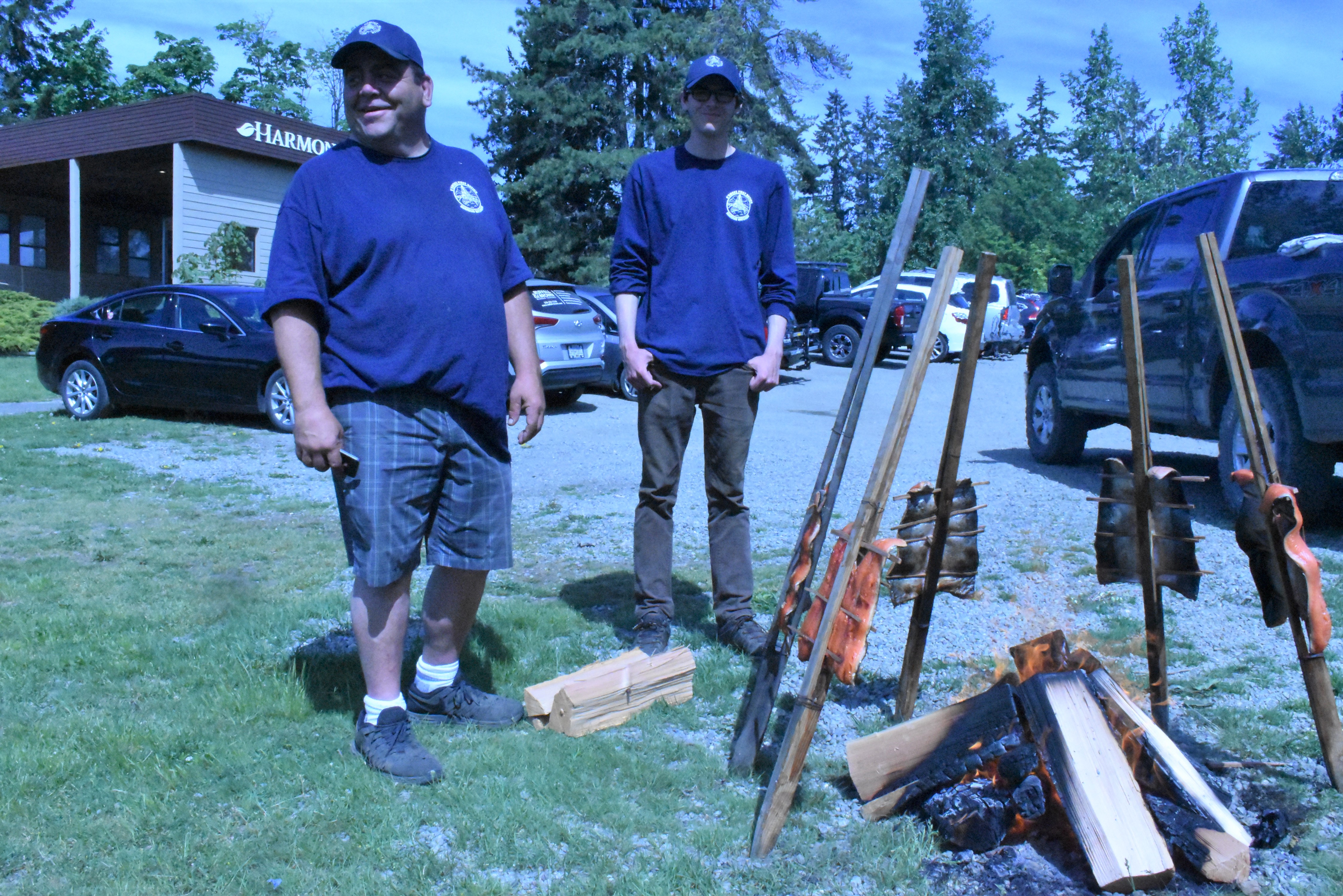The delicious and unique lunch for the conference was a BBQ salmon lunch prepared in a traditional fire pit by members of the K’omoks First Nation Guardian Watchmen. The weather agreed with us on that fine Saturday afternoon and attendees basked in the sun while enjoying salmon and vegetables that were slow steamed in a coal-lined pit under layers of sword fern, salal, and skunk cabbage.
