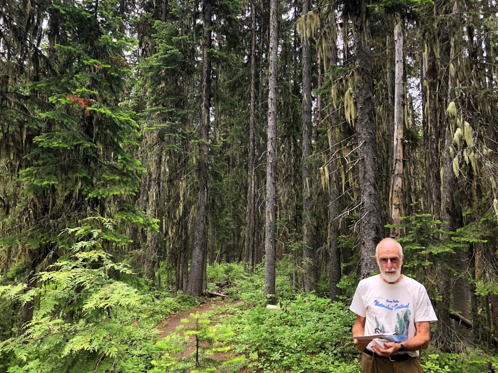 The second site of the day was at Strawberry Pass, a stunning area consisting of old growth trees, rolling mountain tops, and fields of wild strawberries! There, we met Les Carter from Friends of the Rossland Range (FORR), who gave a talk on the management of Strawberry Pass and the surrounding Rossland Range. His talk was extremely invigorating; delivered in a way that asked us to use our scientific knowledge to piece together the story of the landscape, like reading the contours of the surrounding mountain tops to identify the watershed catch basin, and understand the effects of past glaciation events and how they changed the landscape. Next was a guided tour through the Old Growth forest and Les was joined by Eva Cameron of RSEA to explain the intricacies of the surrounding ecosystem, and how the area has been managed for recreational and conservation purposes.
