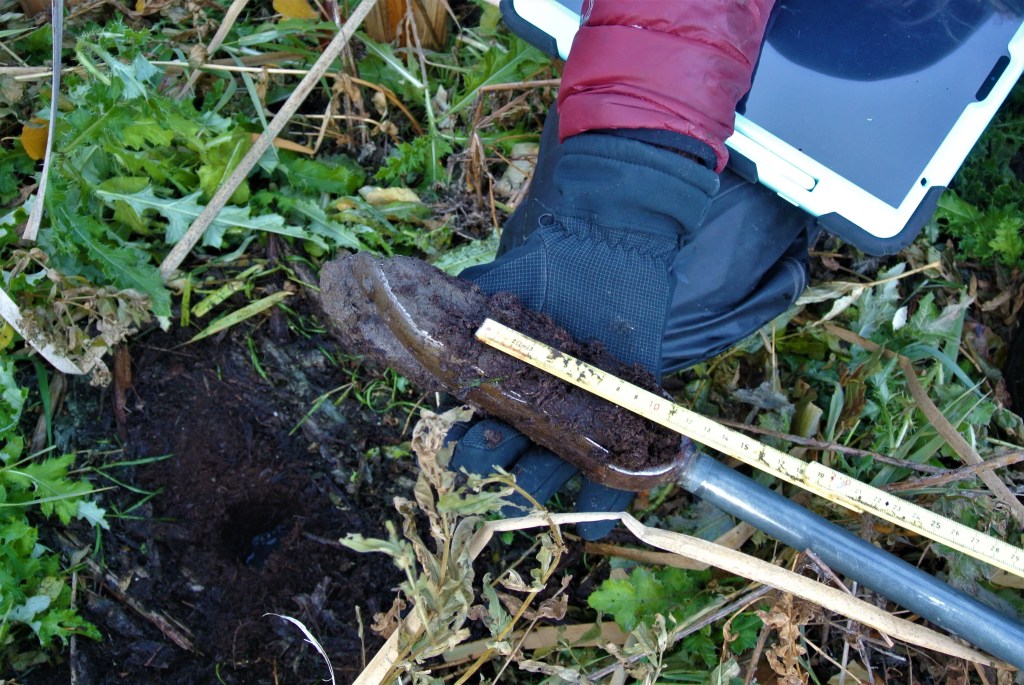Led by Robin, the WEP team suited up in waders and got around to the most fun part of wetland work – getting in the water! Through manual surveying, drone reconnaissance, and old-fashioned trudging through the pond, the team discovered that the remaining areas of open water were nearly twice as deep as the areas where cattails had grown in. This information provided the group with a potential restoration solution – make the pond deeper to discourage the cattail growth! Further soil sampling also showed that it is safe to dig into the wetland without being concerned of losing water, since the wetland is fed by groundwater.