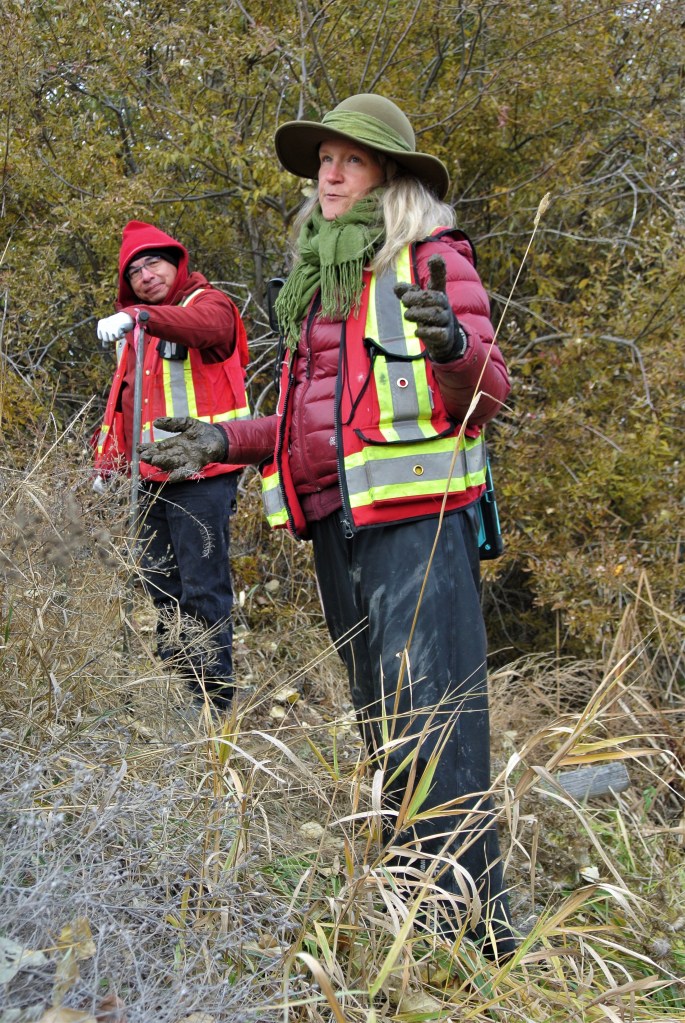 The BCWF were grateful to also be joined by Robin Annschild, a wetland restoration expert, and her colleague Leh Smallshaw. Ginty’s Pond is an oxbow wetland, meaning it was once connected to the Similkameen river, which flows through the traditional territories of the LSIB and the communities of Princeton, Keremeos and Cawston, but has naturally separated over time due to meandering across the floodplain.