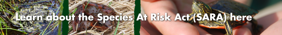 Finally, SARA provides legal protection of federally listed wildlife species and their habitat (e.g., nest or den, which can be in wetlands). If an animal that is federally listed is found to live in a certain location, then the area that they physically live in and surrounding area required for their basic, core habitat needs is protected by federal law. If violations are identified, there are penalties including varying fines of up to $1,000,000, and possible jail time.[5] For more information on this Act or the definition of habitat, see the Government of Canada’s guide to SARA.