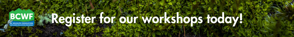 Alongside the educational workshops, the Wetlands Education Program will be hosting the Wetlands Institute in the Comox Valley and Galiano Island. The Wetlands Institute is an intensive, 7-day hands-on workshop that provides wetland conservation and restoration training to practitioners in B.C. Alongside the hands-on training, the Wetlands Institute will offer a Speaker Series which is made up of five online seminars featuring expert speakers.