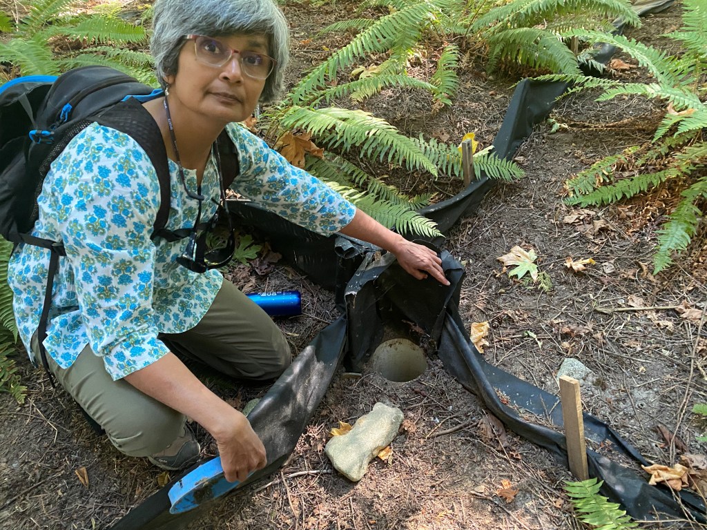 Amphibian Biologist, Purnima Govindarajulu provided an overview of the Haliburton Farm wetland project that was constructed by Tom Biebighauser in 2009. The construction of the wetland drastically improved the presence of native species and amphibians. The amphibians that are now present in the wetland are Long Toads, Northwestern Newts, and Rough-Skinned Newts. There are two main amphibian monitoring techniques used at the farm: salamander boards and amphibian trapping. The salamander boards are used as an artificial cover box providing habitats for the different salamander species. This is an effective method to review the different trends of salamander species and populations throughout the year. The salamander trapping technique used, is by creating a small fence in a cross pattern to trap the salamanders in the middle. When this monitoring technique is being operated, it is checked multiple times a day to ensure that no salamanders are harmed or left in the trap for very long.