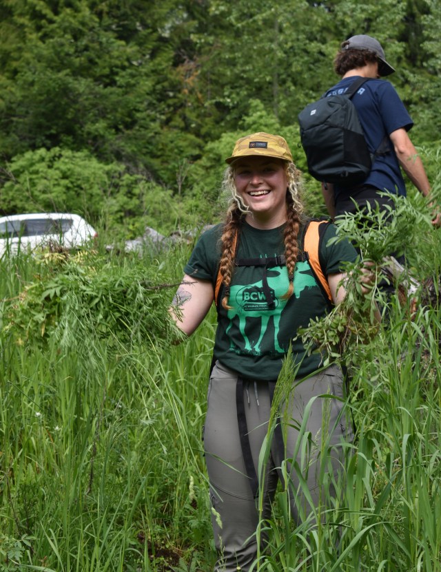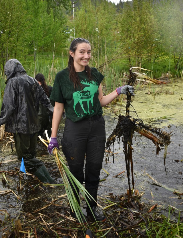 The group had the pleasure of aiding Laura and Eva with some much-needed maintenance at the wetland, including clearing overgrown ponds of cattails, unclogging waterways, enhancing the fencing, removing invasive species, and planting native tree and shrub species in designated areas. Many hands made light work and the group was rewarded with a variety of delicious fresh baked goods from Rossland’s own Hooper’s Bakery. With smiles all around, the BCWF bid farewell to a new group of wetland stewards to continue their Wetlandkeepers journey to Armstrong & Spallumcheen.