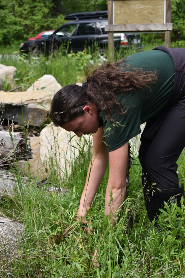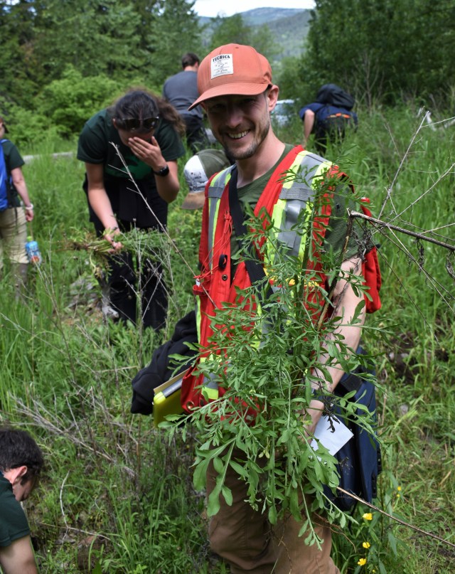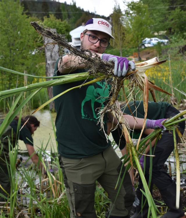 With a quick stop to pull some invasive knapweed, the group left King George and ventured over to the Jubilee Park wetlands. Situated directly behind the Rossland Summit School, this wetland has become an outdoor learning lab with an endless supply of curriculum led by Rossland Summit School teacher, Laura Jackman. Laura has been bringing students to the Jubilee wetland on a weekly basis, rain or shine, over the last few years and is using this alternative classroom format to foster curiosity in a new generation of wetland stewards.