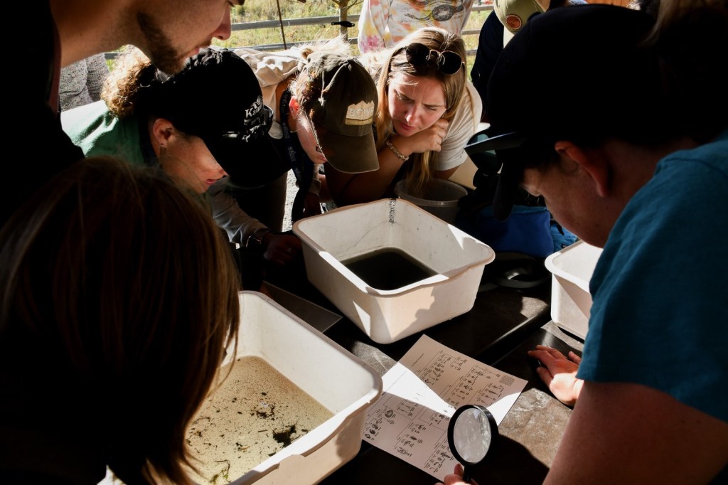 Identifying macroinvertebrates found in the Dufferin wetlands. Photo by Rebecca Dodge, BCWF Wetlands Workforce Field Crew Leader