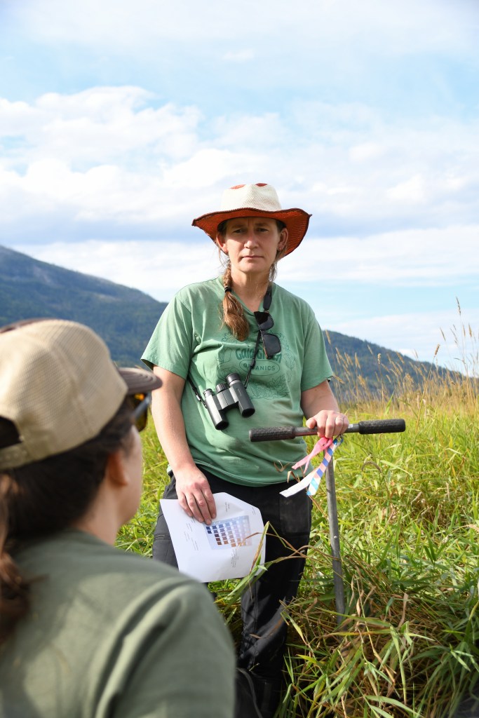 The participants concluded their week with a visit to Duck Lake at the Creston Valley Wildlife Management Area, where they joined Marc-André Beaucher for a Wetland Bird Walk and learned about design considerations for birds in their wetland projects, such as limiting tall trees around the edges as they provide a perch for predators. The group then took part in a Frog Bear Wetland Restoration field tour and attended a presentation on Phase 3 design work with Adrian Leslie of Nature Conservancy Canada. This ongoing project is benefitting landscape connectivity in the Creston Valley by helping create wildlife corridors for species such as the northern leopard frog and grizzly bear. With a continued presence of agriculture on site, this project is creating a space for frogs, bears and food to coexist while exploring ways to balance ecological function and agricultural needs.