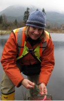 An independent contract biologist, Elke has been studying amphibian ecology on the island and coast for over 15 years. She has been involved with the development of Best Management Practices for Amphibians & Reptiles in Urban & Rural Areas for the BC Ministry of Environment and Habitat Management Guidelines for Amphibians and Reptiles in the Northwestern United States and Western Canada for PARC. Her keen eye for egg masses and gentle touch in handling wetland critters has brought wonder to Wetlandkeepers courses.